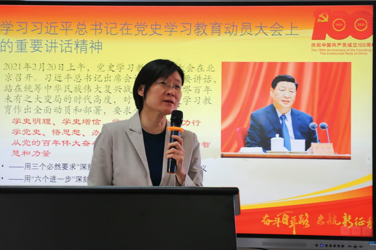 党委书记旋天颖带领大家共同学习了习近平总书记《在党史学习教育动员大会上的重要讲话精神》。她强调,习近平总书记讲话中对党史学习教育作出了全面动员部署、提出了明确目标要求,公司全体师生党员要高度重视,提高思想站位,立足实际、守正创新,深刻领会党史学习教育的重大意义;准确把握党史学习教育的目标要求;认真落实党史学习教育的重点内容;切实增强党史学习教育的实际成效,确保高标准高质量完成学习教育各项任务。