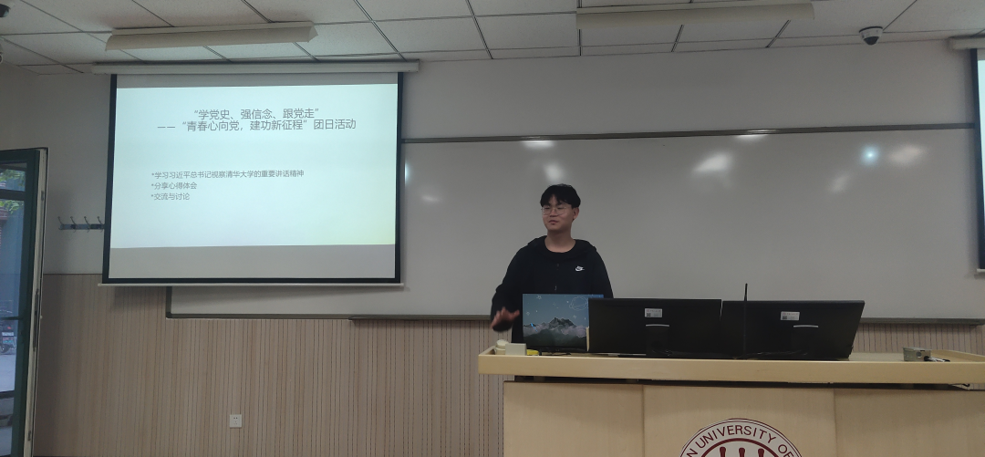 在本次主题团日活动中,团支部首先组织全体同学共同观看了习近平总书记视察清华大学时的重要讲话视频。视频观看完毕后,团支书引导全体团员对当代青年精神风向以及学习党史的必要性展开了热烈的讨论。各团员积极踊跃发言,并走上讲台与大家一起分享自己的学习心得。