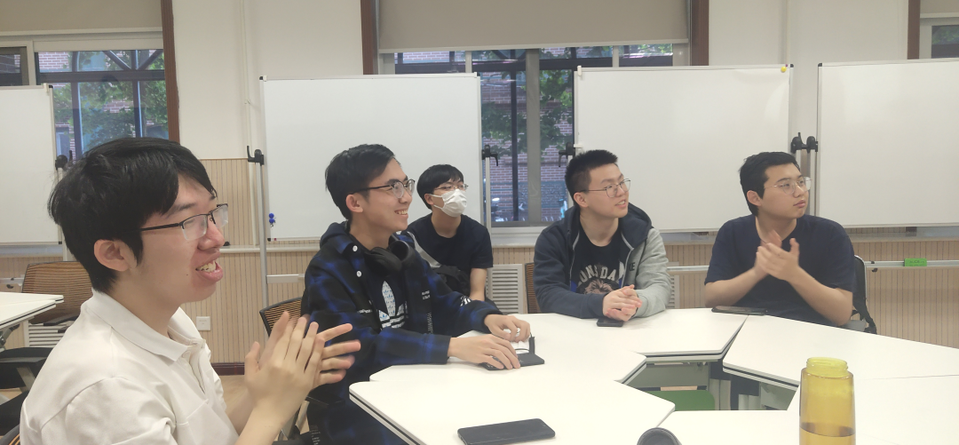 线下参会团员围坐在一起,在团支书洪瑒的带领下轮流朗读了习近平总书记视察清华大学时的重要讲话稿并发表自己的感悟。