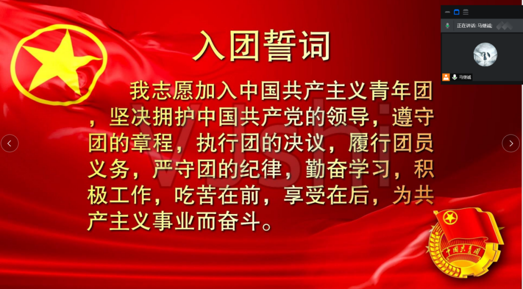 团支书马继诚首先组织同学们观看《青年之问:人的一生应该如何度过?》影片片段,观看之后团支部成员踊跃发表观后感。随后全体成员共同重温入团誓言。最后团支部成员就本次党史学习教育的心得体会、作为新时代的团员青年应该如何度过有意义的一生、如何履行使命和职责,以及对目前团支部的相关工作的意见和建议等方面进行讨论,入党积极分子代表发言。