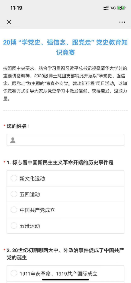 按照团中央要求,结合学习贯彻习近平总书记视察清华大学时的重要讲话精神,2020级博士生团支部特别开展了以“学党史、强信念、跟党走"为主题的团日活动。采取了线下、线上相结合的活动形式,保证了每一位团员都参与其中,学在其中,收获其中。
