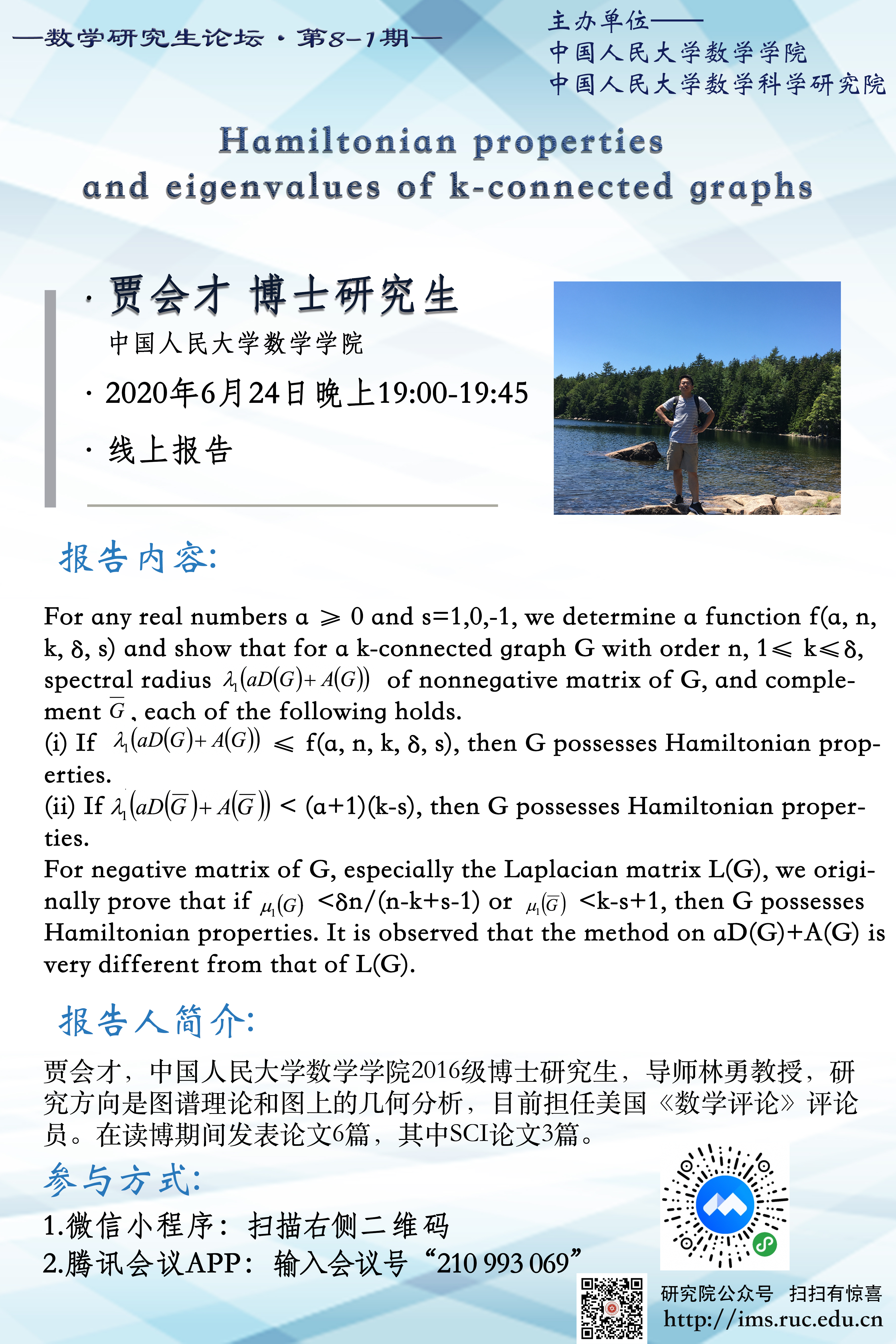 太阳集团tyc151研究生论坛 8-1期 —Hamiltonian properties and eigenvalues of k-connected graphs