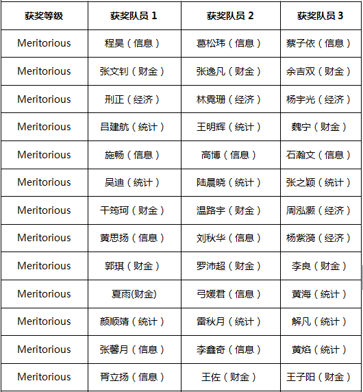 附:2017年美国老员工数学建模竞赛人民大学获奖名单