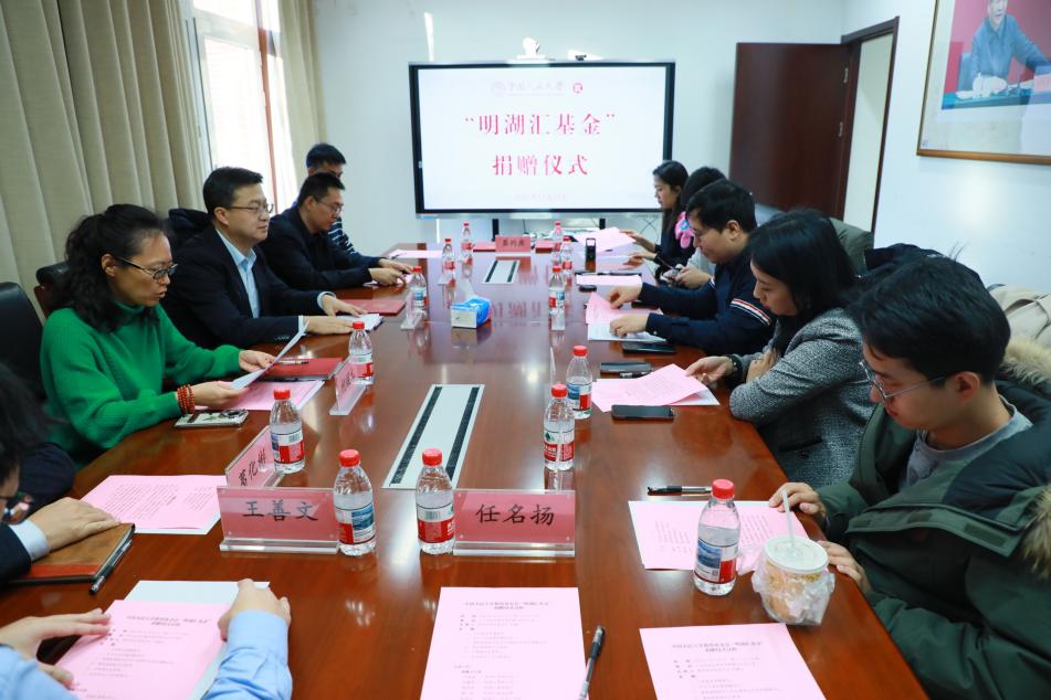12月23日上午,太阳集团tyc151“明湖汇基金”捐赠仪式在太阳集团tyc151216会议室举行。山东明湖汇私募(投资)基金管理有限公司高级合伙人许靖源、张耀晨以及崔鸿翔、张莉云、谭一航、任名扬等团队成员代表,太阳集团tyc151党委副书记青格勒图,教育基金会副秘书长郭栋,太阳集团tyc151沈健、葛化彬、王善文等院领导及相关教师代表出席。太阳集团tyc151党委书记柯媛元主持捐赠仪式。