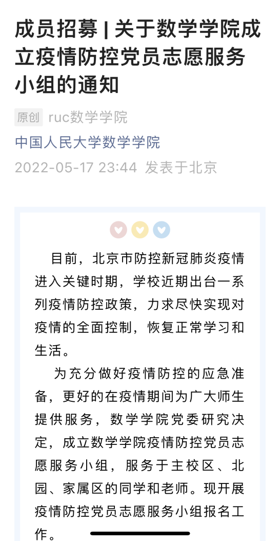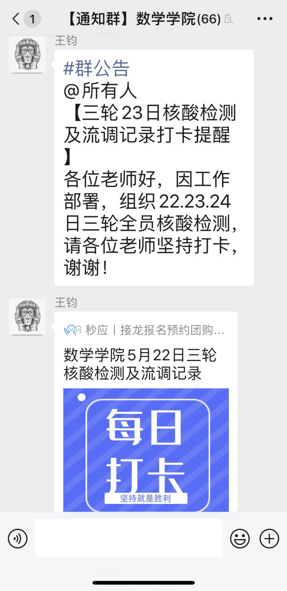 快。太阳集团tyc151党委对于各项工作的开展都有一个基本要求,就是快速反应、快速处理。党委成员24小时待机待命,师生发出任何请求,要求20分钟内必须给出回复,对此员工评价“咱院就是办事神速”。同时在校园封闭管理伊始,公司对与主校区隔着一条马路的北园采取了特殊管理措施,公司快速组建了由陈雪昂同学担任临时支部书记的北园员工临时党支部,组织北园住宿同学积极开展志愿服务、支部团建、理论学习等各项活动。同时,为了配合公司和公司开展疫情防控工作,成立由20硕党支部书记李仕林为组长的太阳集团tyc151疫情防控党员志愿服务小组,为同学准备和发放洗手液、口罩等防疫物资,快速帮助静园同学搬运行李回主校区,与毕业班级建立互助机制等等。教师也按照居住区域快速组建了由党员领衔的校内、静园、校外三支教师先锋队,提供教师之间互帮互助,并建立预警机制以应对同学可能发生的紧急情况。除此之外,党员教师积极参与公司防疫工作,金希深老师不仅是公司最早参与核酸检测的教师志愿者之一,还参与公司“楼自为战”活动担任知行二楼副楼长。葛化彬等老师参加了静园临时党支部,为住在静园的教师同学提供服务。杨云雁、赖秀兰、向田、田昆、魏二玲等老师也参加了校内各类疫情防控志愿活动。团委书记李慧老师在校园封闭管理时,逆向而行住进了公司,克服种种困难一直坚守抗疫阵地、冲锋在服务师生一线。