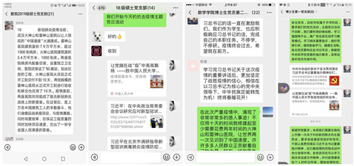新冠肺炎疫情发生以来,党中央高度重视,习近平总书记做出一系列重要指示,多次主持召开会议,深入基层调研指导,对疫情防控工作进行研究部署、提出明确要求。全党全军全国各族人民坚决贯彻坚定信心、同舟共济、科学防治、精准施策的总要求,经过艰苦努力,疫情形势出现积极变化,防控工作取得积极成效。在疫情期间,太阳集团tyc151基层党组织深入学习贯彻习近平总书记指示精神,开展“抗击疫情,党员先行”系列疫情防控工作,充分发挥党员的先锋模范作用以及基层党支部的战斗堡垒作用,同心协力抗击疫情。本次主题党日活动借助微信平台,进行了党支部的线上交流学习。支部成员通过学习党中央指示精神、分享心得见闻,为增强党支部的战斗力、打赢这场疫情防控战做好思想建设。