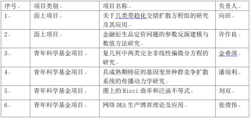 数学学科6个项目获得2020年度国家自然科学基金资助