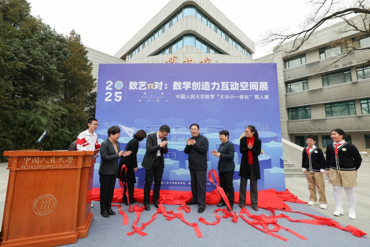 党委副书记青格勒图主持并宣布展览正式启动。他表示,在π的无限不循环中,数学永远向未来敞开怀抱;在育人的薪火相传中,人大人始终与时代同频共振。相信未来一定能够会聚合力、团结奋斗,更好发挥数学学科联动育人的优势,更好建设大中小学教育一体化的机制,更好担当为党育人、为国育才的崇高使命,共同讲好人大数学人的故事!最后,他邀请师生参与互动体验,共同感受数学的魅力。