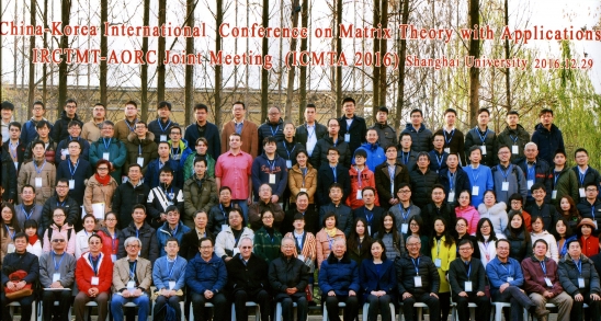 信息公司数学系张伦传教授于 2016年12月28至31日在上海参加“2016 China-Korea International Conference on Matrix Theory with Applications, IRCTMT-AORC Joint Meeting (ICMTA 2016)” (2016 中韩矩阵论及其应用国际会议),并以 “The equivalence of hypercontractivity and logarithmi Sobolev inequality for q-Ornstein-Uhlenbeck semigroup (-1