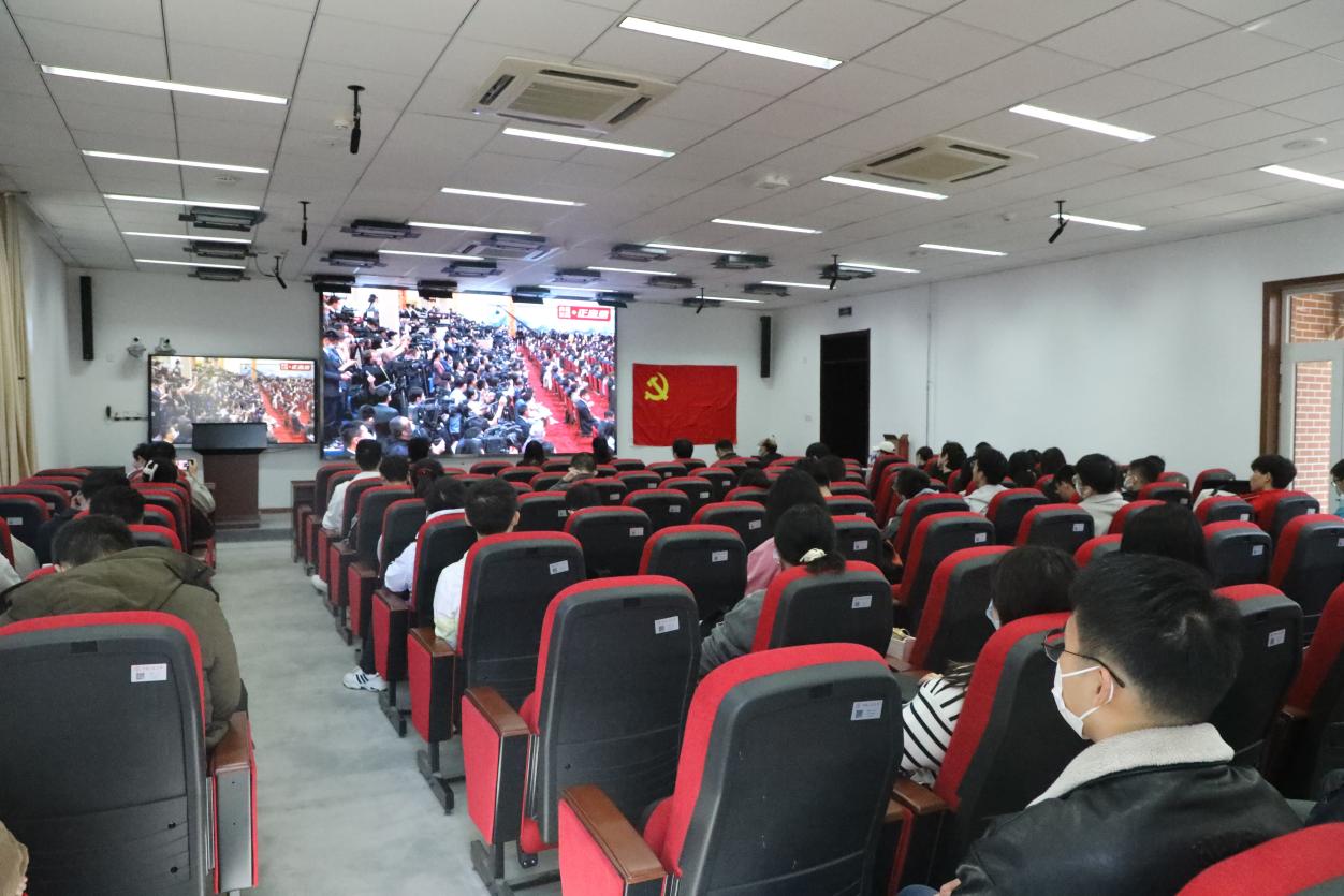 太阳集团tyc151组织全体师生党员、全体团员,通过线上线下相结合的方式,集中收看了新一届中央政治局常委同中外记者见面会直播。公司领导班子、理论中心组成员、各党支部书记和师生代表在太阳集团tyc151二层报告厅共同收看。考虑线下会场容量及疫情防控要求,公司设置线上会场统一组织其余师生参加观看学习。