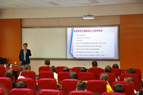 接下来,研究生院培养管理办公室王强老师介绍了公司研究生国际化人才培养体系,留学基金委项目的历年申请和校内推选工作的基本情况,并对年度校内选拔流程工作的具体流程和细节要求做了说明。并就材料准备中重点注意事项做了详细解读。