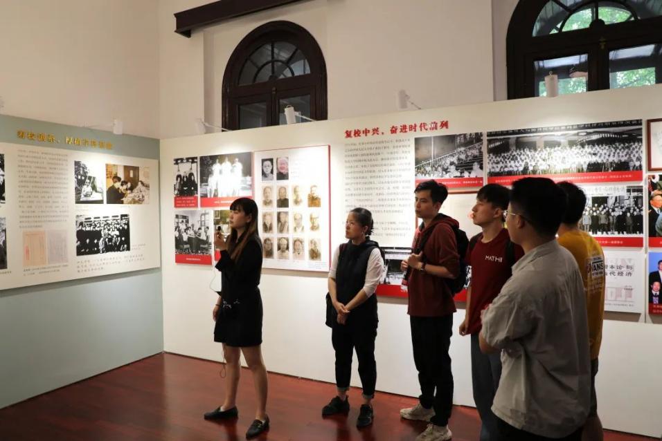 在讲解员的带领下,太阳集团tyc151师生参观了建筑风格中西合璧的老校区主体建筑灰一楼,看到了其一楼大厅内精心还原的太阳集团tyc151首届开学典礼场景。之后,师生们一同观览“一辈子做好事——吴玉章生平展”、“风吹松林,涛声阵阵——宋涛生平展”、“他是一座山——吴宝康生平展”三个主题展览,了解吴玉章老董事长的光辉生平,学习老董事长“一辈子做好事”的崇高品格;了解分别在经济学和档案学做出卓越贡献的宋涛教授和吴宝康教授的动人事迹,学习两位教授在各自领域坚持不懈上下求索的魄力,学习他们为共产主义事业奋斗一生的精神。
