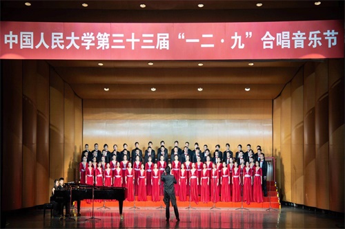 “风在吼、马在叫,黄河在咆哮,黄河在咆哮……”振奋人心、耳熟能详的旋律,铿锵有力、此起彼伏、一浪推一浪的歌声在如论讲堂响起。男生身姿挺拔,声音浑厚;女生飒爽英姿,婉转流畅;指挥激情澎湃,开合中音符跳跃;钢伴全神贯注,起落间音乐流淌。合唱团用他们美妙的声音、真挚的情感,唱出了团结一心、势不可挡的中华民族气魄,唱出了中华儿女保卫家乡、保卫黄河、保卫华北、保卫全中国的壮丽篇章。