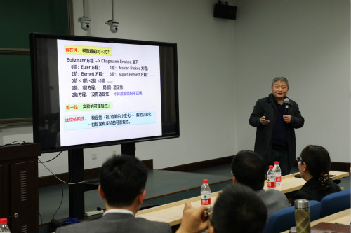 江院士简述了偏微分方程在现实生活中的应用。他提到,偏微分方程不仅是研究其他数学分支的有力工具,在其他领域中也起着不可或缺的重要作用。例如在科学与工程技术、经济与国防建设等领域会建立许多偏微分方程数学模型,进而这些数学模型的理论分析与数值求解就显得尤为重要。江院士就偏微分方程的数值求解问题做了详细讲解,从偏微分方程领域数学理论研究中的基本问题——方程的适定性,讲到复杂方程解逼近的各种方法。