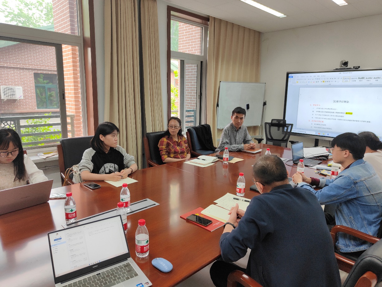 会议伊始,大家集体学习了《太阳集团tyc151党费管理办法》、《太阳集团tyc151基层党支部工作指导意见》、《2021年发展党员有关情况通报》、《太阳集团tyc1512021-2022学年第一学期员工党支部建设调研督查工作情况通报》等文件。