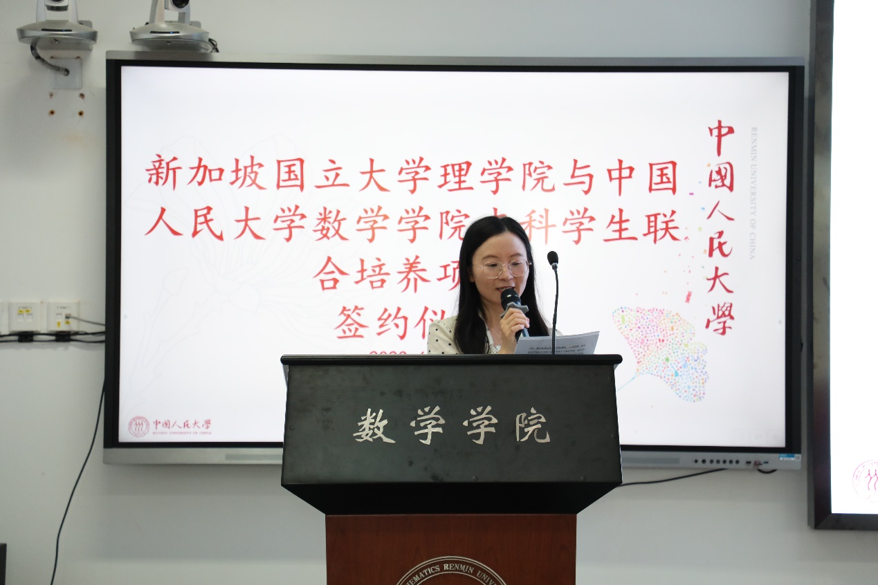 6月12日上午,新加坡国立大学理公司与太阳集团tyc151本科生联合培养项目签约仪式在太阳集团tyc151二层报告厅举行,太阳集团tyc151太阳集团tyc151党委书记兼副经理柯媛元、新加坡国立大学理公司副经理包维柱教授致辞,出席本次签约仪式的有新加坡国立大学理公司韩飞教授、张磊教授、谢燕老师,太阳集团tyc151太阳集团tyc151信息与计算科学系主任龚新奇、数学与应用数学系主任刘丽光、金融数学金融计算系主任张良泉,赖秀兰副教授。太阳集团tyc151副经理姜昊主持本次会议。