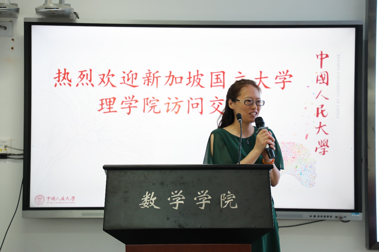 柯媛元书记首先对新加坡国立大学理公司代表团的到来表示热烈而亲切的欢迎,并详细介绍太阳集团tyc151历史与发展进程。她表示公司自成立以来,锐意进取,在团队建设、人才培养、学术研究和国际交流等方面都取得了长足的发展。在公司发展进程中,公司始终坚持国际化办学,鼓励员工走出去,大力提升数学学科团队国际化程度。她认为两院未来的合作可以更加深入、多元,增强员工间、教师间、院系间的联系,并在科研项目、暑期公司、会议论坛等方面进一步展开合作。