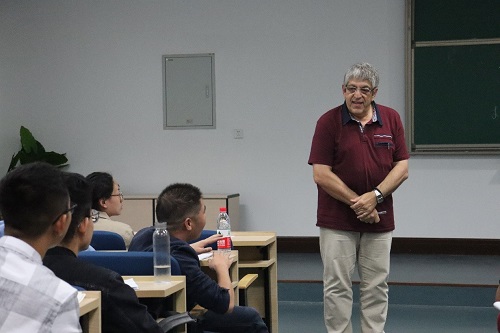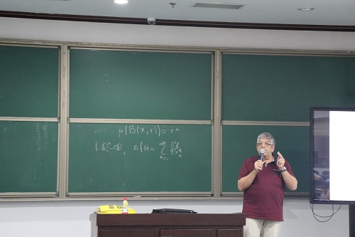 Alexander Grigor’yan教授首先基于热核的概念,讨论了奇异度量空间,特别是分形空间的分析元素。这类空间有两个参数:Hausdorff维数和Walk维数,而后者决定了扩散过程的空间/时间尺度。之后他提出了各种方法来定义行走维数,包括通过Besov函数空间和通过Markov跳跃过程。最后讲解了热核界的扩散和跳跃过程。报告后,师生纷纷提出问题并得到了教授的耐心解答。本次讲座使师生都深化了知识理解,受益匪浅。