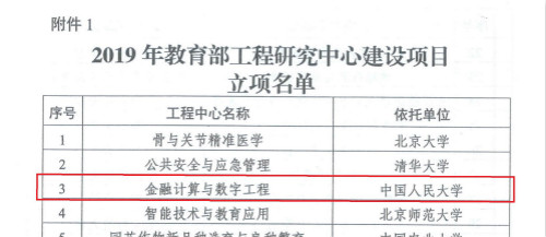 近日,《教育部关于2019年度教育部工程研究中心建设项目立项的通知》(教技函[2019]72号)发布,全国高校本年度共立项教育部工程研究中心61个,公司“金融计算与数字工程研究中心”名列其中。
