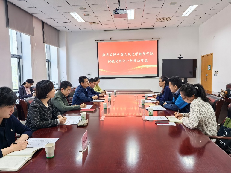 调研会上,李洪波所长对人大太阳集团tyc151一行的到来表示欢迎,并系统介绍了系统科学研究所在应用数学及交叉学科领域的研究优势。柯媛元书记介绍了人大太阳集团tyc151团队建设、团队力量及员工培养相关情况和取得的成绩。会议重点讨论了数学领域院所合作新模式的相关事宜,以培养具有国际竞争力的数学领军人才,为服务国家科技自立自强作出更多积极贡献。