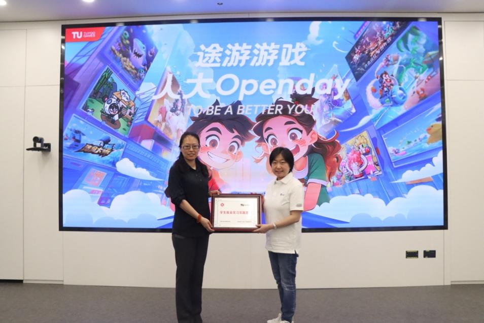 最后,就员工实习实践基地建设、联合人才培养等进行交流,柯媛元书记授予途游游戏公司员工就业实习实践基地牌匾。